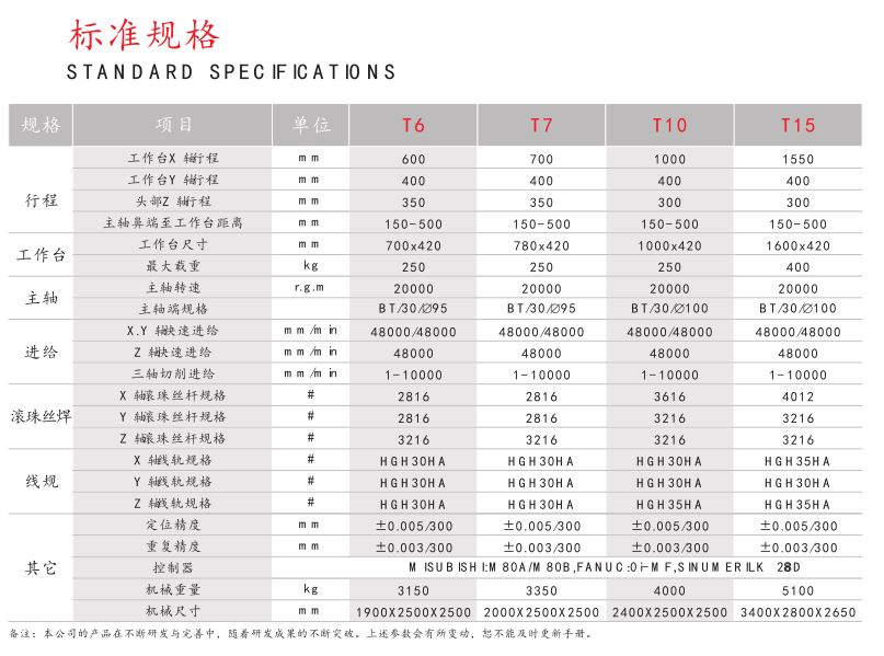 三軸絲桿導(dǎo)軌均采用日本TH K 或臺(tái)灣PM I 等知名品牌, 軸承采用N SK 、N TN 等國(guó)際一線品牌;